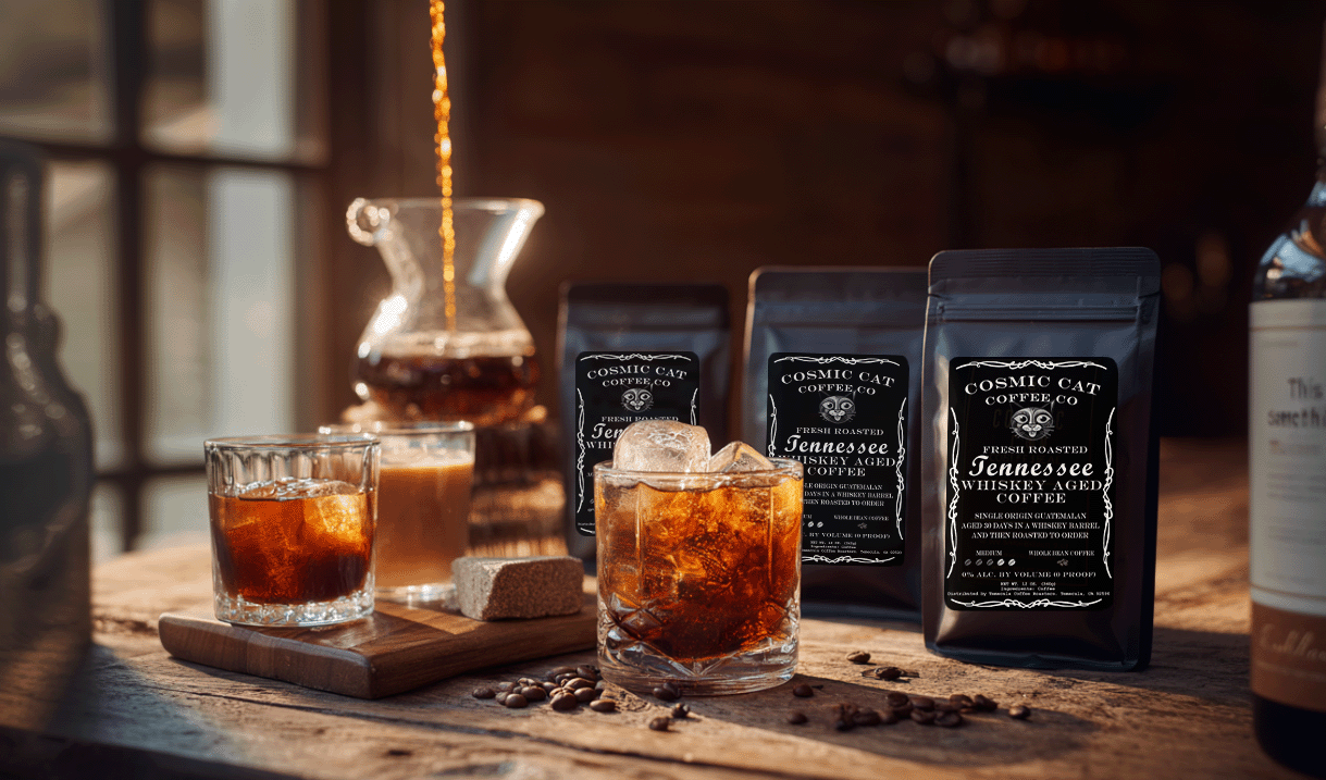 Meet the Cosmic Cat Coffee Best Sellers Box — a curated trio of our most-loved coffees: Bali Blue, Guatemala, and our Tennessee Whiskey Aged coffee (aged 30 days in authentic whiskey barrels). Each bag is roasted fresh to order with priority and ships the same day for unmatched flavor and aroma.