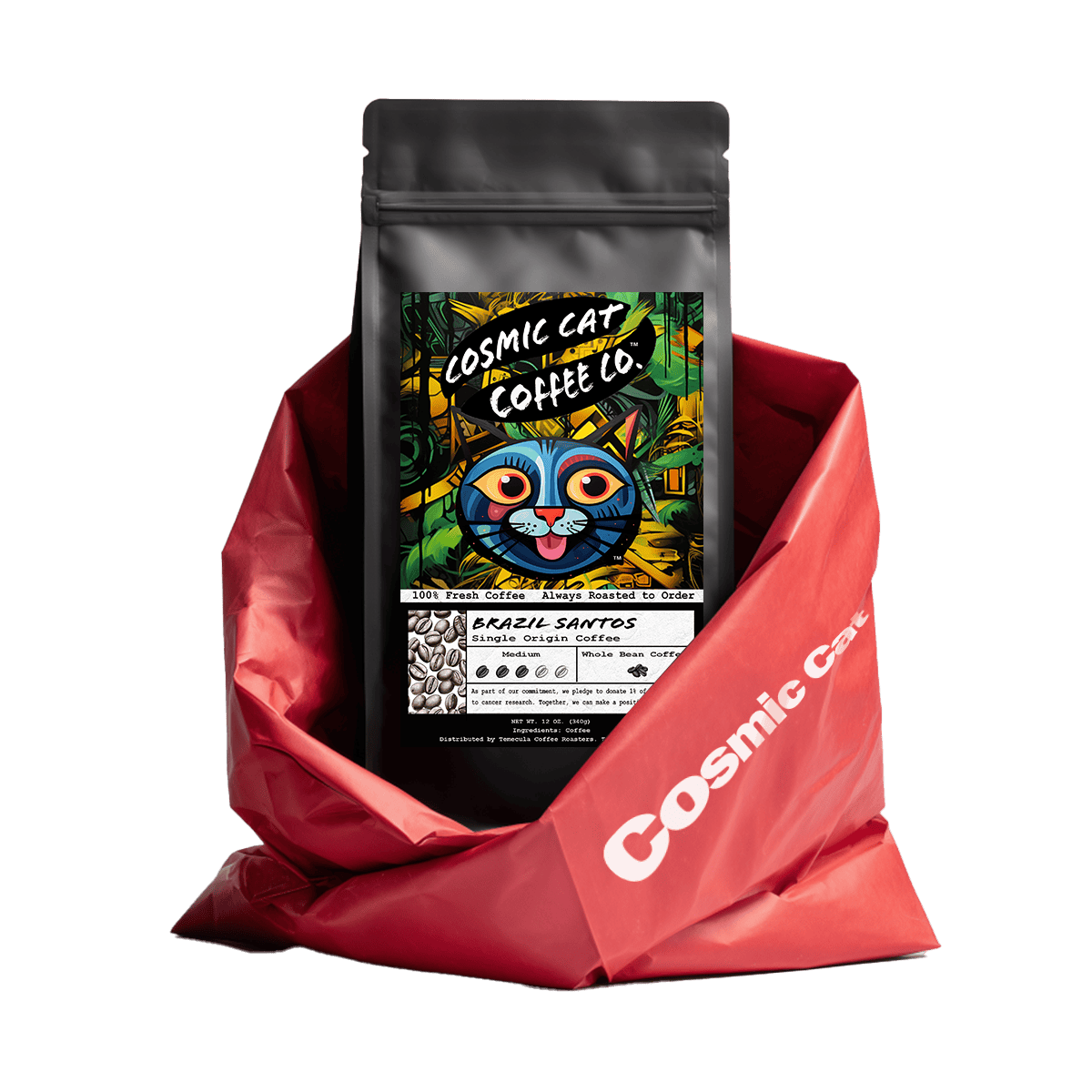 Experience the elegance of Brazilian coffee with our Brazilian medium roast. Sourced from the fertile volcanic loam soils of Paraná and São Paulo, this smooth, perfectly balanced cup reveals rich cocoa notes. Made from the Catuai and Mundo Novo varieties, the beans are pulped naturally and dried in the sun to enhance their deep, authentic flavor. Every sip reflects the vibrant terroir of Brazil. Roasted fresh daily and shipped same day for peak flavor, this coffee connects you to the heart of Brazil while supporting breakthrough cancer research.