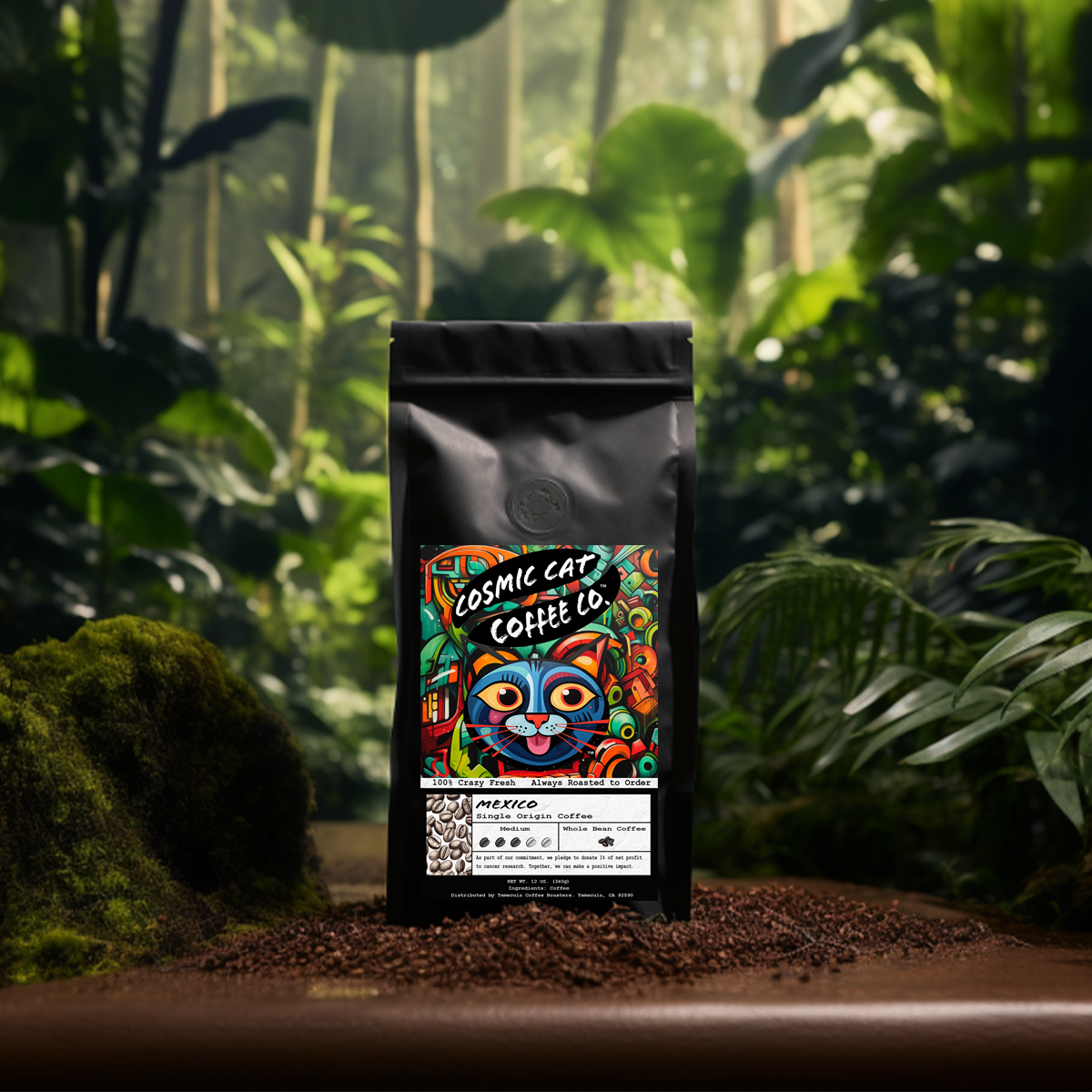 Discover the beauty of Chiapas and Oaxaca with Cosmic Cat Coffee’s Mexican Coffee. Grown at altitudes between 3,000 and 3,300 feet, these beans thrive in their rich environment. Each batch is custom-roasted to order, capturing the authentic essence of Mexican coffee culture. Enjoy a cup that delivers vibrant flavors and supports our commitment to funding breakthrough cancer research initiatives. Freshly roasted daily and shipped the same day for unparalleled freshness and taste.